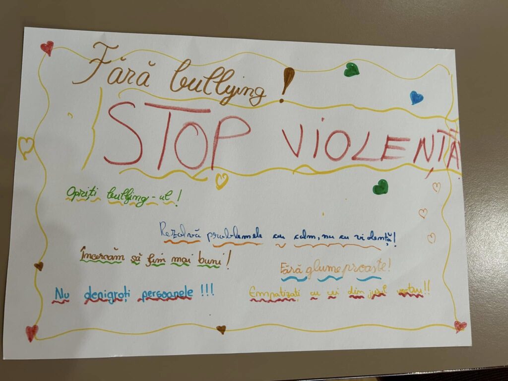 Activitatea derulată împreună cu partenerii noștri a avut ca temă violența școlară, cu obiectivele: Informare, Conștientizare, Prevenire, Raportare, Colaborare.
