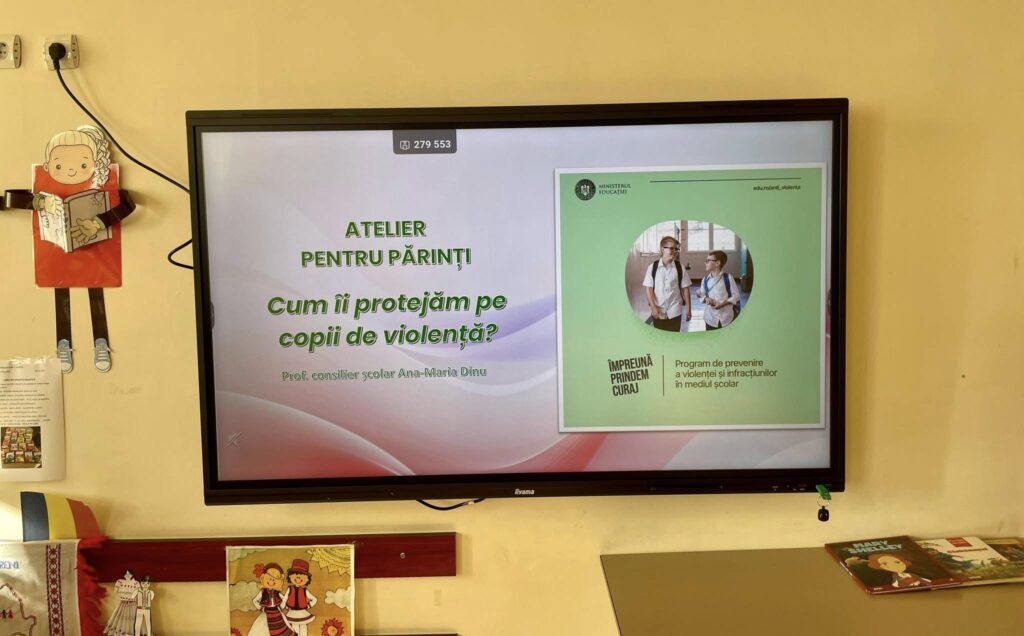 În cadrul proiectului “Împreună pentru o școală mai bună”, desfășurat la Școala Gimnazială Nr. 1, s-a derulat atelierul pentru părinți “Cum îi protejăm pe copii de violență”. Prin această activitate am dorit să punem împreună școala și familia pentru a găsi cele mai potrivite soluții de a-i proteja pe copiii comunității noastre de violență și efectele acesteia.